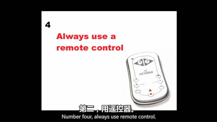 第二,用遥控器。你看我接触过电脑吗?没有,为什么?因为我在用遥控器,永远要用遥控器。