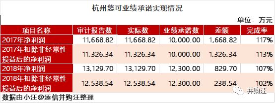 杭州2017、2018年悠可业绩承诺实现情况如下: