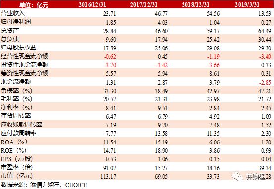 负债率始终在增长,到19年一季度时已达47.21%。2018 年度财务费用比 2017 年度增加 72.41%,主要原因为发行公司债及银行借款增加相应利息费用增加。2018 年度利息费用比 2017 年度增加 109.08%,主要原因为发行公司债及银行借款增加相应利息费用。另外,存货周转率下降,存货变现能力降低。