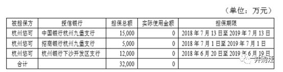 公司向杭州悠可提供了三笔连带责任保证担保,共计3.2亿元,具体明细如下: