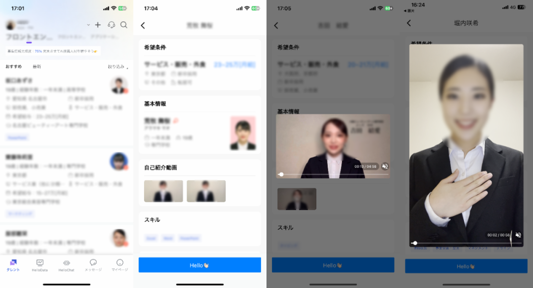 另外我们顺应客户的要求和时代潮流,在 App 内制了视频自我介绍功能,求职者可以直接将手机内的自我介绍视频制作上传到「HelloBoss」内。