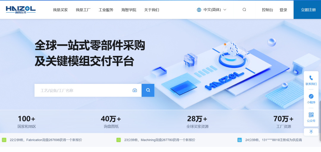 此次融资的顺利完成,标志着海智在线迈入全新的发展阶段,将积极拓宽非标零部件在线采购市场的全球布局,全面加强平台的数字化寻源管控与创新验证服务能力,深入探索推动产业链上中下游、大中小企业融通创新的平台发展模式。 自2015年成立以来,海智在线一直致力于解决非标零部件供应链管理中的难题。目前,平台已积累了来自全球105个国家的28万买家、70多万家中国工厂和超百万张图纸资源,并与上海国投资管等签署了战略合作协议。通过实现非标零部件交易全过程各环节的数字化、智能化、线上化,海智在线成功搭建了首个“非标零部件供应链数字化寻源管控平台”,并初步构建了“创新研究院”框架,为国内国际创新主体提供从研发早期到产品落地的综合服务。 海智在线将持续深度链接国内大买家,促进大中小企业之间的融通与合作,构建互利共赢、协同发展的产业链生态。同时,积极拓展海外买家覆盖范围,加强与国际市场的连接,充分发挥平台优势,为中国工厂提供全方位的数字化赋能,帮助其更好地融入全球供应链体系,践行海智在线创业之初的共同愿景——“世界的买家,买世界,从买中国开始”。二、加强数字化、智能化升级,提升平台服务制造业供应链的管控能力 海智在线正全力推进平台数字化、智能化升级进程,重点实现订单管理、生产监督、交付支付的数字化、智能化、线上化。以自研技术为驱动,推出能解决“生产履约过程难管控,交期延误风险难防范”等行业问题的智能化工具,打造全球首个用于非标零部件交易支付结算的数字化订单和记账系统,并对已有的5种AI工具进行迭代升级,为企业提供真正管用的数字化、智能化供应链管理工具。 海智在线将充分发挥其在服务创新方面的优势,通过进一步编织完善制造业数字化供应链网络,持续加强专门队伍力量,丰富完善关于创新的相关数据库,为国内国际创新产品落地提供“一站式”综合服务。同时,加强与国内国际各类科创平台、创新主体链接,深化全球科技创新和产业创新与我国供应链的合作,不断探索新的服务模式和技术手段,推动科技创新和产业创新融合发展。 海智在线将基于丰富的交易场景和大量的市场主体,多维度拓展第三方服务。通过集成原材料供应、物流、工程技术服务、工业软件等,形成良性的工业发展生态。未来,平台将实现外贸业务一站通办、一键通办,融入包括出口信用保险、外贸单据、国际物流、跨境电子支付、金融服务、报关、出口退税等多种能力,尽可能实现贸易各环节的数字化,进一步提升便利化水平。 在2023年7月举办的平台企业座谈会上,海智在线创始人佘莹认真听取了李强总理关于“平台企业坚定信心向前看”的重要指导。此后,海智在线积极响应号召,受邀参加了2024年全国外贸工作会议、2024年中国(越南)贸易博览会、中国-马来西亚工商界午餐会等国家级大型活动,努力带动更多中国制造走出国门。 海智在线通过持续推动创新突破,专注赋能实体经济发展,已取得了显著成果。截至目前,平台已拥有36项软件著作权及7项知识产权,支持27种语言交易。仅2024年上半年,平台订单金额已超过100亿元。此外,在2024年7月举办的无锡线下对接会中,现场可追溯的图纸项目意向成交额达到了数十亿元。