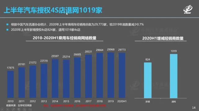 此外,据中国汽车流通协会统计,今年上半年乘用车经销商总数为29773家,较2019年底数量减少0.7%,新增授权4S店824家,退网1019家。