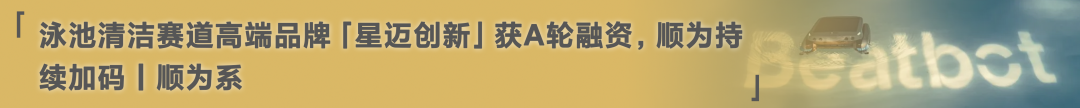 近日,泳池机器人公司「星迈创新」宣布完成 A 轮融资,本轮由凯辉基金、Monolith、安克创新联合领投,顺为资本、高瓴创投、源码资本、云沐资本、吴中金控以及高秉强教授跟投。公司累计融资总额超 5 亿元,本轮投后估值近 20 亿元。本轮融资将主要用于产品研发、人才招聘和市场拓展。