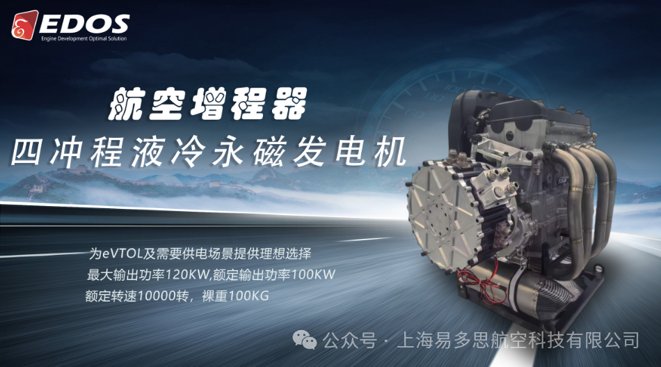 ② EDOS-1300 X3航空增程器,采用先进的发电机技术,其最大输出功率为120kW,持续输出功率为100kW,输出电压800V,发动机自重(含控制器)100Kg,为eVOTL长续航提供了可靠的解决方案。