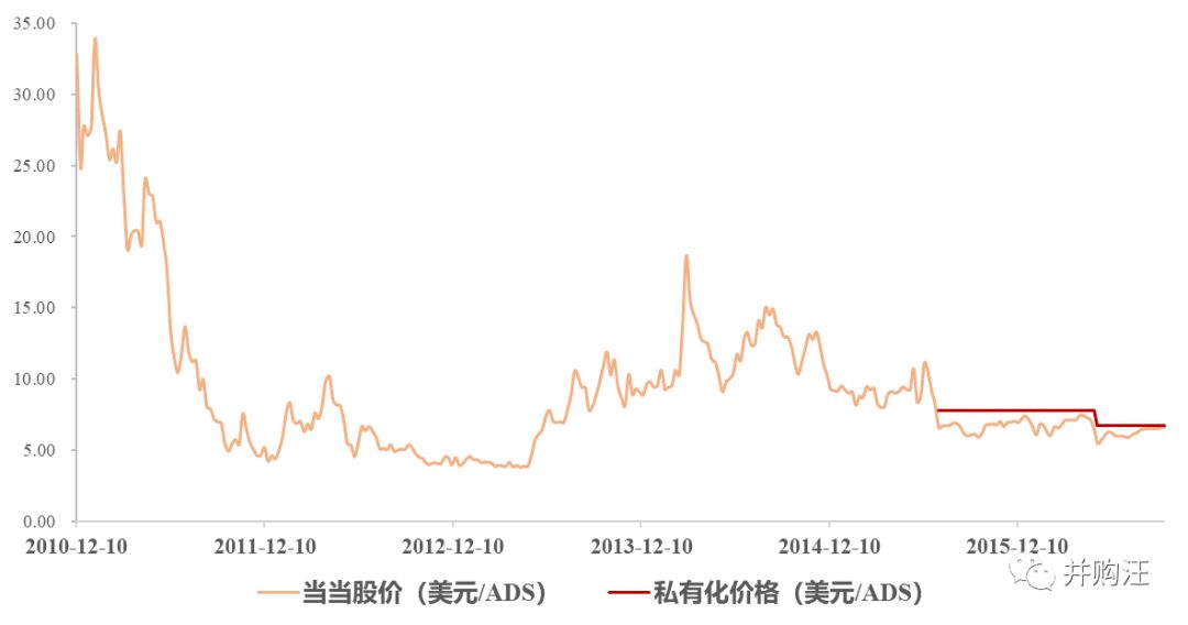 私有化要约收购价格与市场价格对比如下图所示: