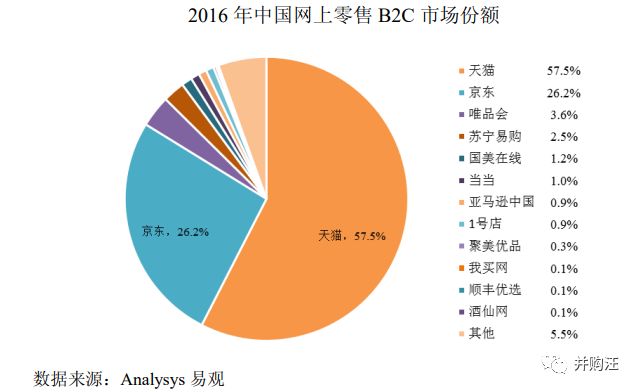 再来看电商巨头京东的数据。京东在2016年活跃用户数为2.266亿人,订单数量约为6.516亿件。