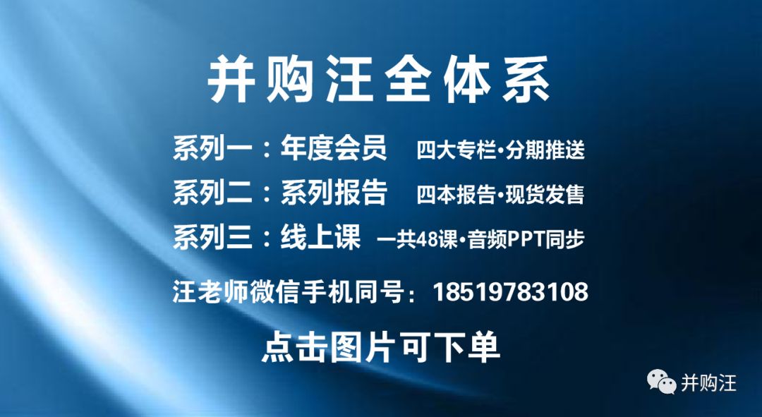 版权声明:本文版权归“并购汪”运营主体所有,转载本文时,需在正文前显著位置标注文章来源且在文末附上“并购汪”公众号二维码并简要说明,否则视作侵权,“并购汪”运营主体将保留追究法律责任的权利。引用观点、数据、图表,请注明来自专业机构并购汪。