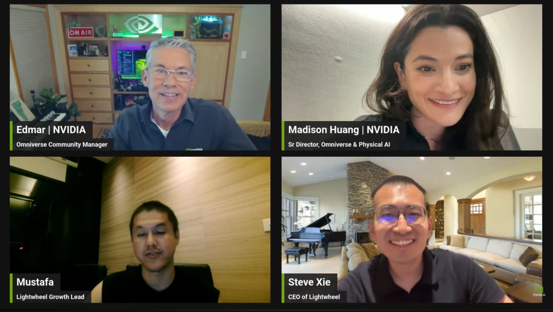 在行业层面,10 月上旬,英伟达 Omniverse 与 PhysicalAI 产品营销高级总监 Madison Huang 首次公开亮相直播,与光轮智能 CEO 谢晨一起,就“如何缩小机器人在虚拟与现实之间的差距”展开深刻探讨;10 月底的英伟达 GTC DC 大会上,黄仁勋在主旨演讲中展示了光轮基于 Isaac Sim 与 Newton 所构建的高精度仿真资产与场景。这些频繁互动体现了双方在推动生态建设上的紧密协作。