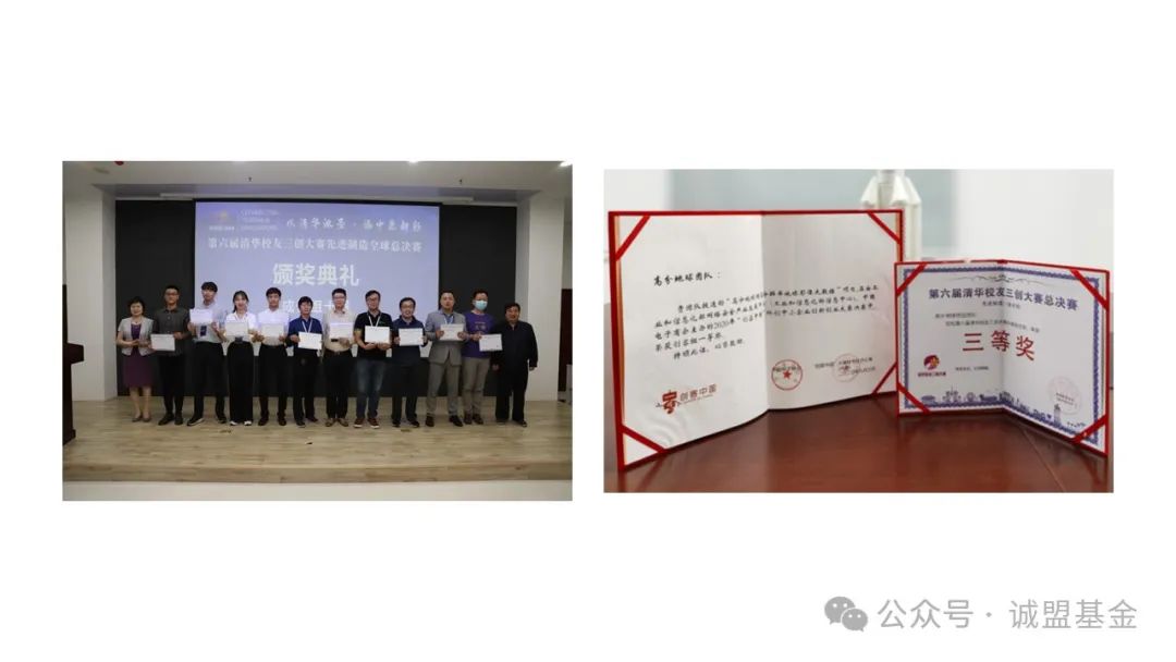 2021年第六届清华校友三创大赛京津冀鲁赛区+北美赛区先进制造赛道决赛优秀奖、2021年第六届清华校友三创大赛总决赛三等奖。
