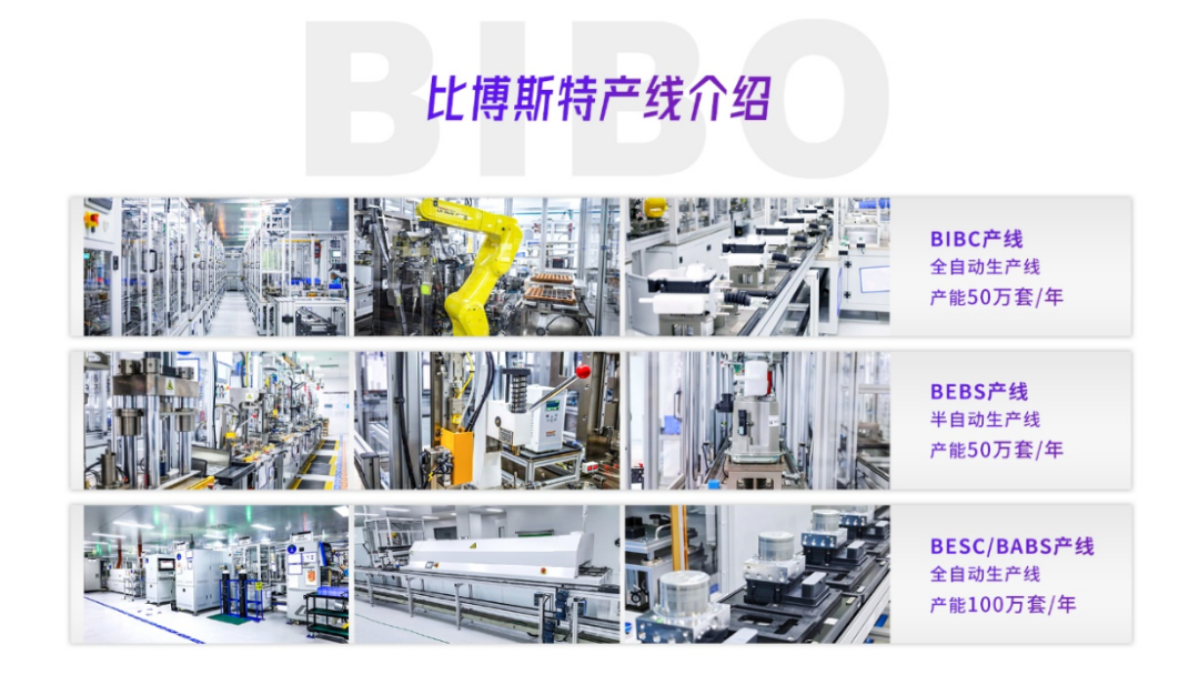 2023年,比博斯特南通制造中心全面投产,集成式线控制动系统(BIBC)、电液式线控制动系统(BEBS)、电子车身稳定性控制系统(BESC)、制动防抱死系统(BABS)等均已量产,全栈智能制动产品年产能达200万套。比博斯特发布的第二代集成式线控制动系统(BIBC 2.0,支持双控EPB和制动冗余模块(BRBM))预计于2024年中量产,量产进展处于业界领先水平。