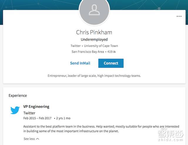 其实,平卡姆上月初就在Twitter上透露了自己离职的消息,只是从来未被公开报道过。他当时说:“很享受过去两年在Twitter的时光。但如今,我该离开了。”据平卡姆的LinkedIn页面资料显示,他目前处于“失业”状态。