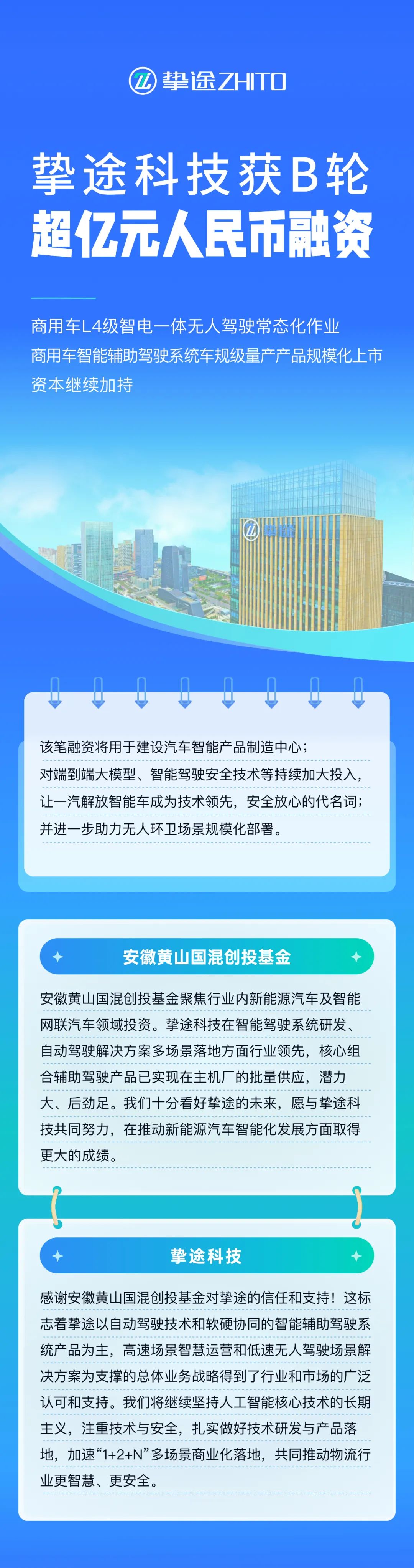 挚途科技完成超亿元B轮融资,商用车智驾迎来收获期