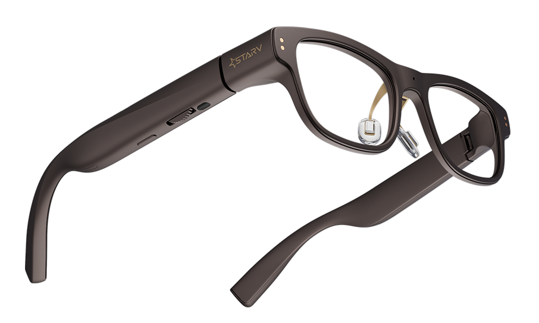 星纪魅族 StarV Air2 智能眼镜,它有两个麦克风和单色显示的屏幕。