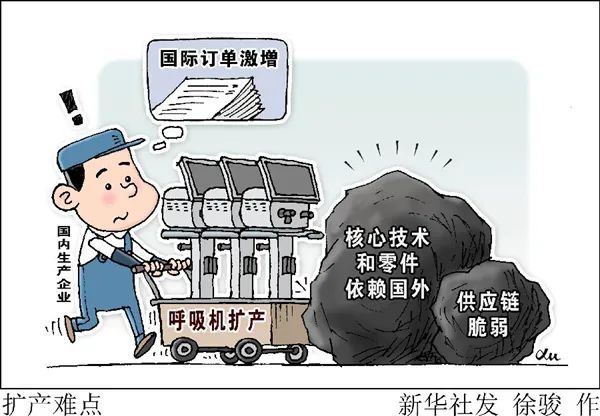 尽管手握大量国际订单,但业内人士表示,呼吸机增容扩产并不容易。不容回避的事实是,由于产业起步晚,呼吸机核心技术和关键元器件仍掌握在国外厂商手中。因部分零部件来自目前疫情严重的欧洲和美国,物流受阻,供应链脆弱。