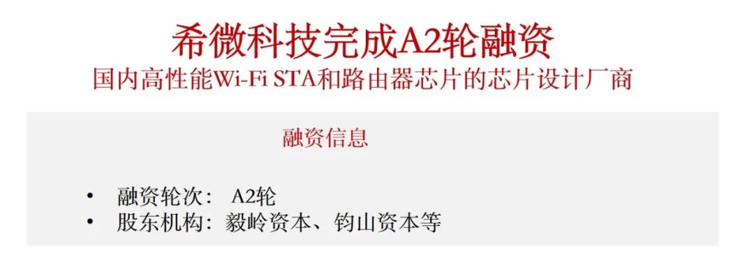 希微科技成立初期即获得了北极光创投、顺为资本、华业天成、传音投资、全志科技等知名投资机构和产业方的投资,后期更是获得了多家如瀚联产业基金、华业天成以及星睿资本分别在各轮融资中独家投资或领投的支持,显示产业资本对于希微科技和其赛道的长期看好。希微科技作为国内领先的高性能Wi-Fi STA和路由器AP芯片的设计厂商,汇集了曾在国内外芯片龙头企业任职多年的核心高管和资深研发人员。成立仅三年多的希微科技已在Wi-Fi6领域储备了众多核心技术,形成了完备的自研核心IP体系技术积累和体系架构,致力于依托Wi-Fi技术为智慧家庭、智慧医疗、智慧安防、智慧教育、智慧交通、工业互联等全场景通讯领域提供完整的解决方案。