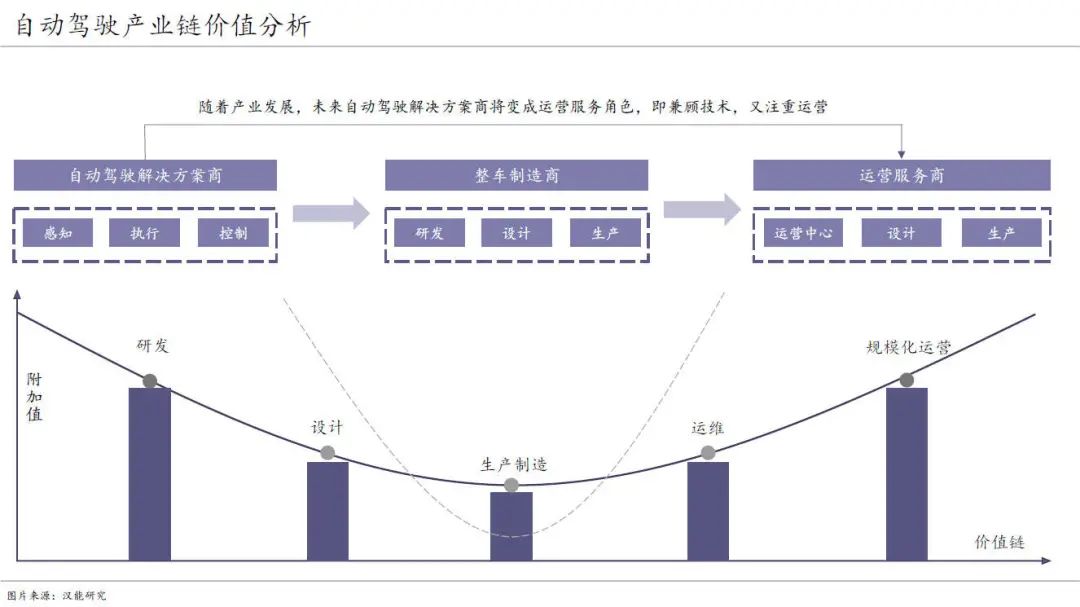 站在产业的角度,随着自动驾驶技术的成熟与商业化落地,汽车产业链原有的价值分配格局将被颠覆,汽车将不再是从属于人的驾驶工具,而是成为自主导航的运输类机器人。