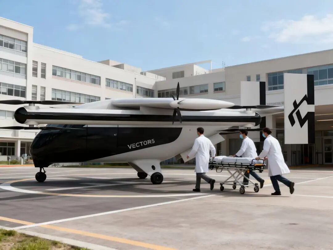 在应用场景方面,Vector 5初期主要面向紧急医疗救援和搜索救援提供服务。针对这两类场景,Vector 5整机做了多处定制化设计:飞机舱内可容纳2.3m标准航空担架,采用符合国际标准的四点式快速锁定装置,医护人员可在15秒内完成担架的装卸操作(效率较传统直升机提升60%),同时飞机配备大型尾门,支持担架快速转运。此外,机舱内预置6组115V/28V电源接口及氧气终端,可同时为除颤仪、呼吸机、心电监护仪等8类关键医疗设备供电,解决了传统机型“转运慢、适配差”的痛点。