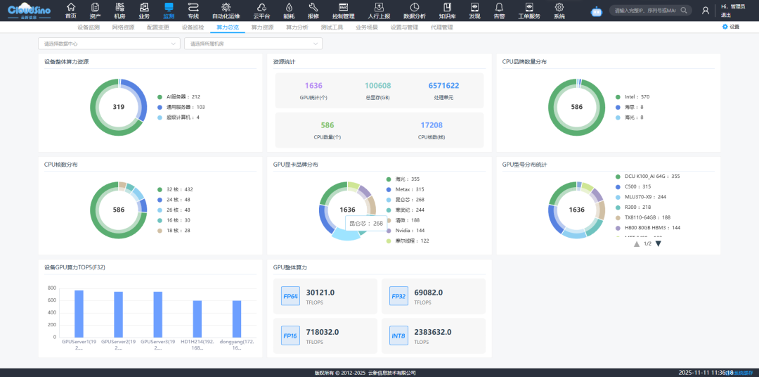 (图:云新信息数据中心算力资源管理产品界面功能展示)