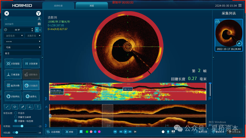 恒宇医疗是国内极少数掌握OCT核心设备及耗材技术的厂家,并且具备规模生产能力,成本可控,可持续。在支架集采后时代,进一步推动辅助诊断OCT产品的普及。2024年6月OCT HS 200的成功上市意味着恒宇在OCT融合领域拥有国际领先技术。目前全球仅有美国SpectraWAVE公司的OCT-NIRS产品获批FDA(510k)。恒宇OCT HS 200在识别钙化、皮质化评价、全新三维模式、兼容多种冲洗介质、AI算法储备等多方面具备全面优势。