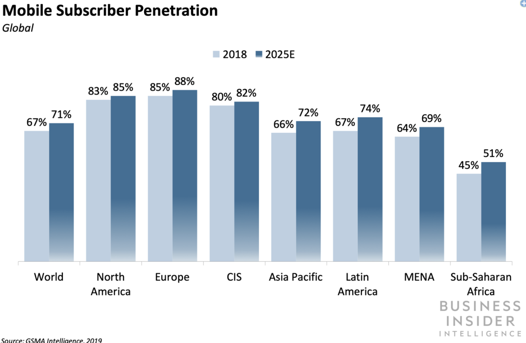 其中,饱和在欧洲和北美等发达市场尤为明显,到2025年,智能手机的普及率将分别达到82%和90%。其中,欧洲预计将达到88%,北美则预计将达到85%。